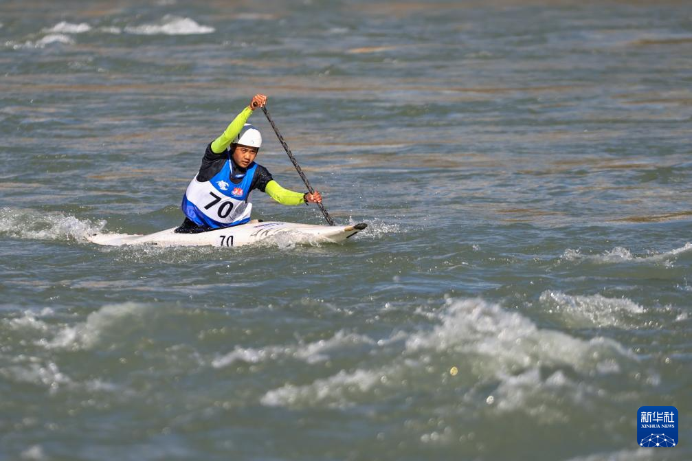 12月20日,中国选手范依依在比赛中。最终,她获得专业组女子单人划艇短距离赛第一名。