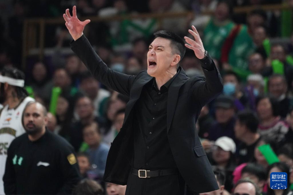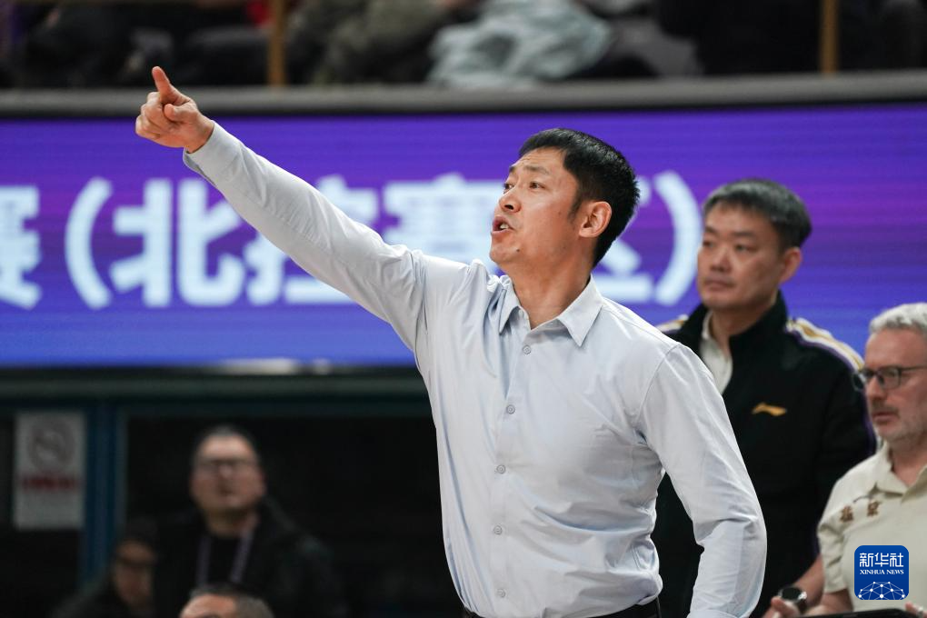 12月27日,北京控股队主教练张庆鹏在比赛中指挥。