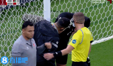 约旦门将阿布拉伊拉飞身扑救撞柱,接受治疗后继续比赛。