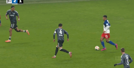 第26分钟,布朗助攻,胡戈-拉松铲射破门扳平比分,法兰克福1-1汉堡