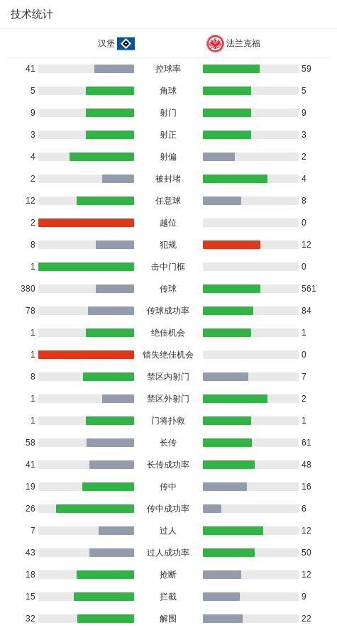 第18分钟,科林斯传球失误送大礼,洛孔加低射破门,汉堡1-0法兰克福