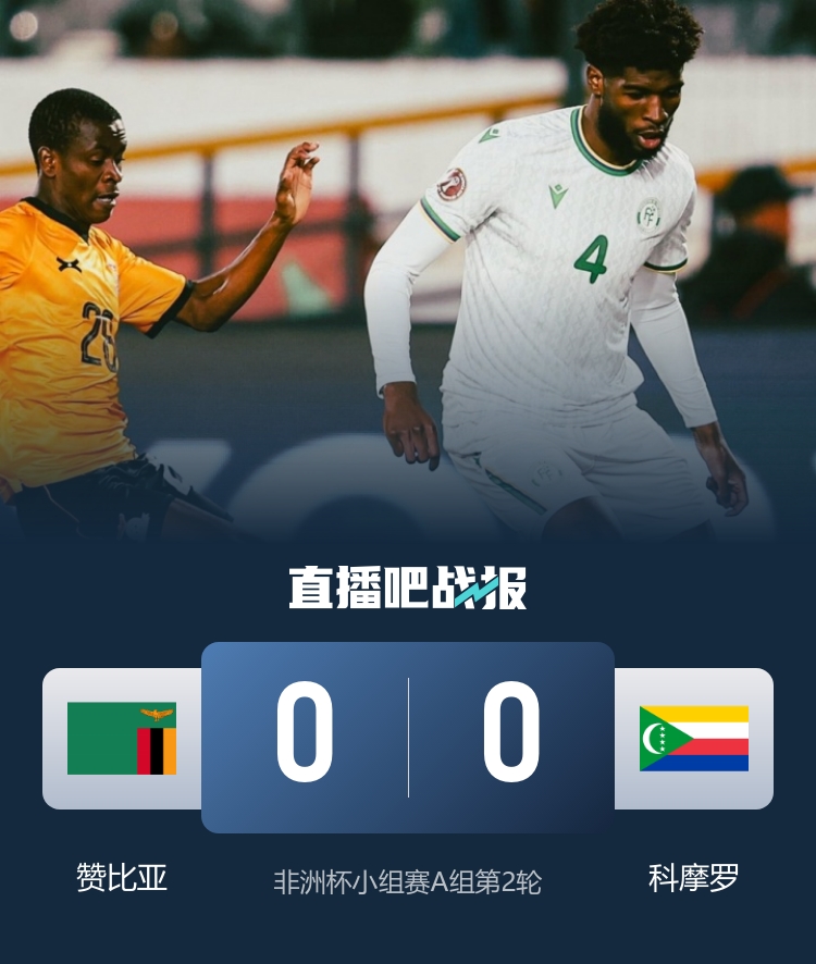 双双2轮不胜!赞比亚0-0闷平科摩罗 毛利达破门因队友犯规被吹