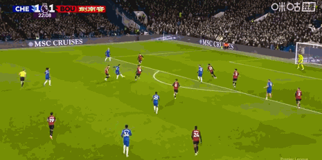第23分钟,加纳乔助攻,恩佐劲射破门,切尔西2-1
