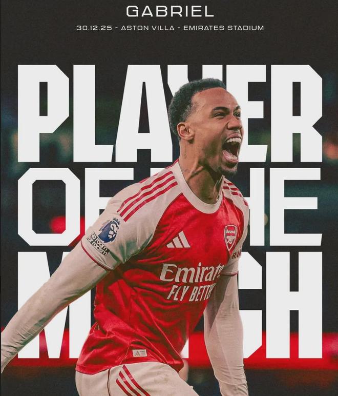 加布里埃尔被阿森纳官方票选为了本场比赛最佳球员。