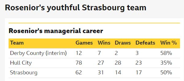 如果成功执教蓝军的话,那么罗西尼尔将成为近五位蓝军主帅中第四位曾执教英冠球队的主教练。