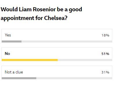 值得一提的是,51%的球迷认为罗西尼尔不是切尔西的理想选择。