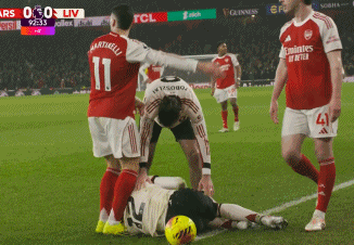 不仅如此,随后马丁内利还推搡了一下倒地的布拉德利,试图将这位利物浦后卫推出界外,这直接惹怒了利物浦球员,导致双方爆发冲突。科纳特、凯尔凯兹、麦卡利斯特纷纷为队友出头,怒推马丁内利。而阿森纳球员也都加入冲突,双方互相推搡围拢在一起激烈争吵。