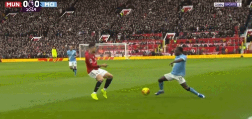 第10分钟,罗德里分球左路,多库变向突破,达洛特踹到对手的膝盖,但裁判手下留情,仅出示黄牌警告,曼联逃过红牌。