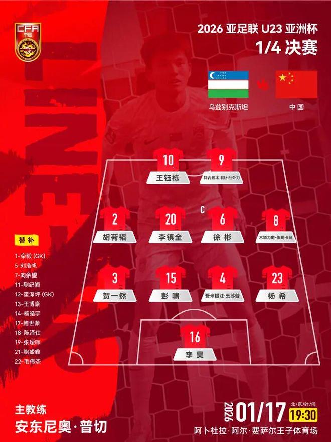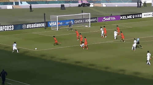 加时赛上半场,双方由于体力问题,都有意放缓了节奏,第98分钟,蒯纪闻替补王钰栋上场,他凭借体力优势,在中场积极拼抢,可惜队友能给他的帮助有限。整个加时赛上半场,仅乌兹别克斯坦有一脚禁区外的远射,也没能打正目标。