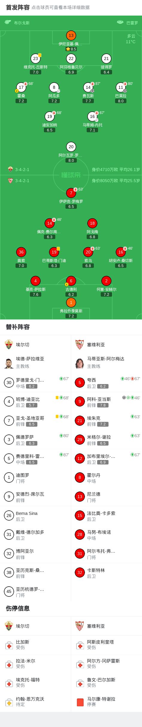 北京时间1月20日西甲日报西班牙足球甲级联赛 联赛 第20轮,埃尔切主场对阵塞维利亚。埃尔切费瓦斯破门,巴莱拉破门。塞维利亚阿科-亚当斯梅开二度。最终比分埃尔切 2-2 塞维利亚。