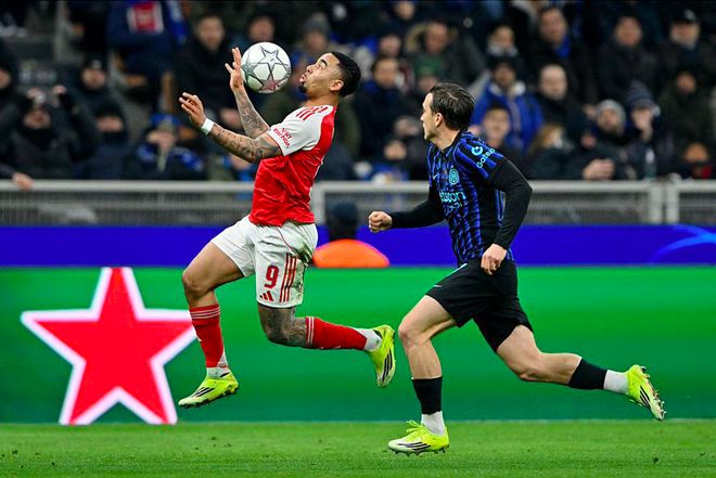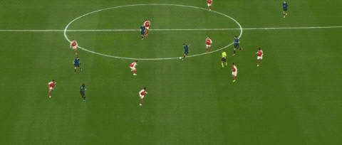 第10分钟,阿森纳在国米的30米区域打出眼花缭乱的配合,廷贝尔将球扫到中路,热苏斯插上,打破僵局。