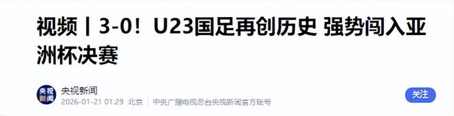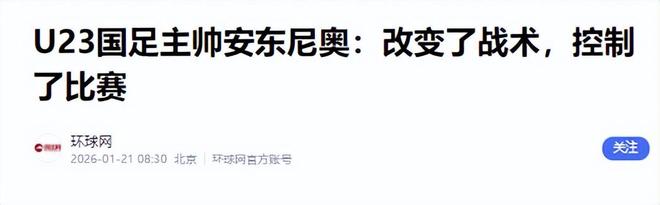 部分来源:U23国足主帅安东尼奥:改变了战术,控制了比赛-环球网视频丨3-0!U23国足再创历史 强势闯入亚洲杯决赛-央视新闻中国3-0越南!创造历史!赛后获3个好消息+1个坏消息!-铁血球评