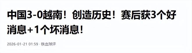此次 3-0 完胜越南,不仅打破了逢越不胜的怪圈,更终结了中国男足国字号 22 年的洲际决赛荒。