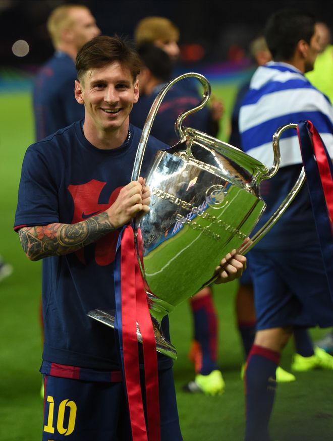梅西还有五子登科,还有对阵利物浦的绝对角任意球,以及2015年带队获得史上最有含金量的欧冠冠军——当年梅西带巴萨在欧冠击败了五大联赛所有卫冕冠军、夺冠。那一年,梅西的巴萨还击败了其他五个不同杯赛和联赛的冠军,获得五冠王。唯一输的对手,也在其他赛季被赢回来。