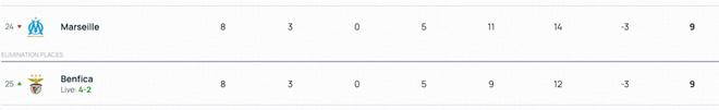 这粒进球,让本菲卡以1个净胜球的优势,将原本可能晋级的马赛淘汰出局,升至第24位。更有趣的是,由于皇马排在第9,双方在淘汰赛进入到同一半区,可能在淘汰赛附加赛再次相遇!