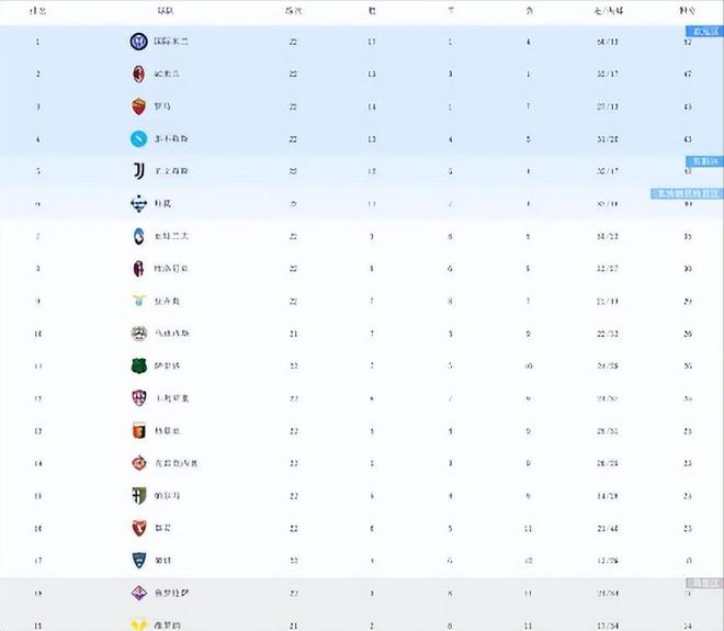1-13-0意甲积分榜:争冠难了?AC米兰21轮不败落后国米5分尤文第5